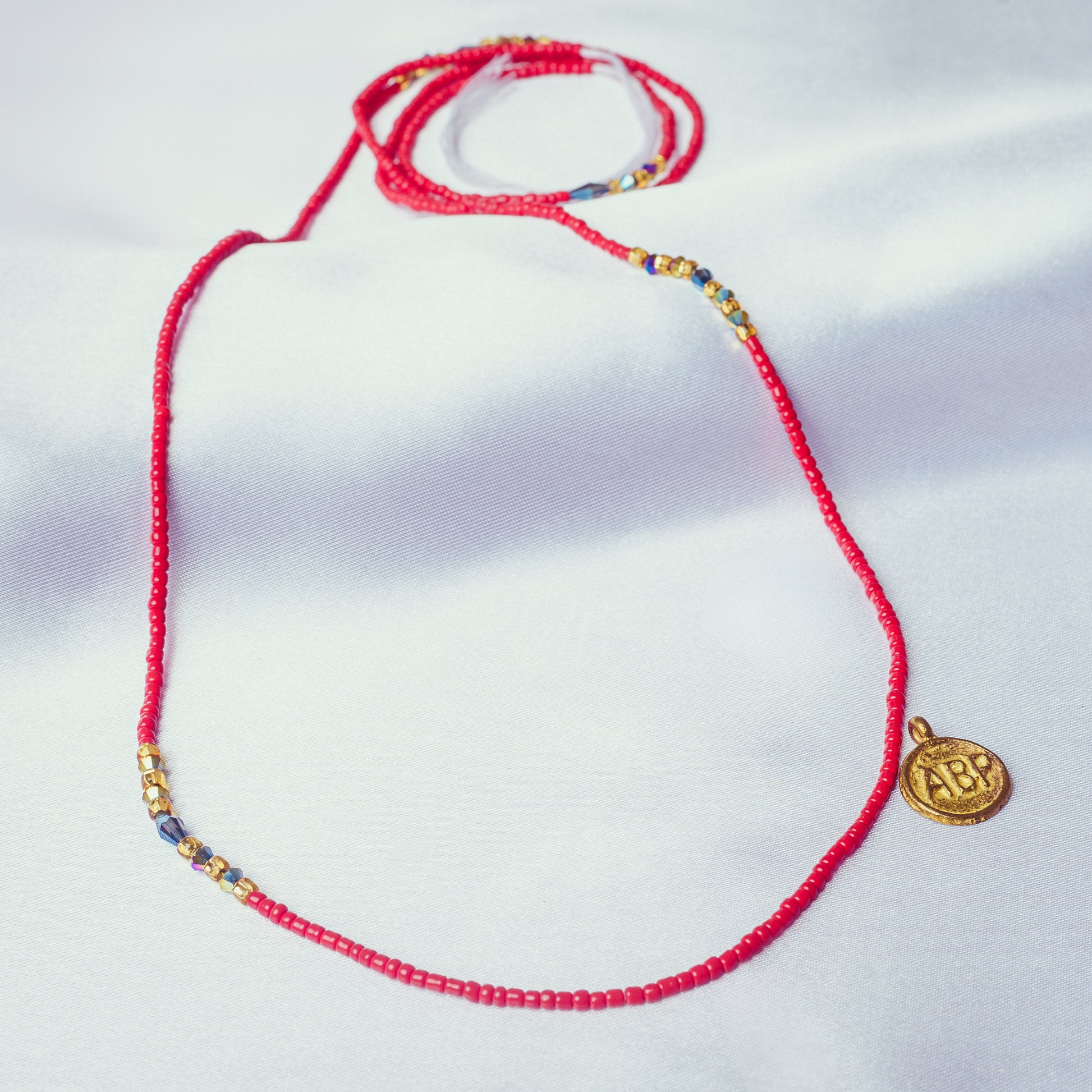 - Matière : fil de coton sans fermoir, perles de verre